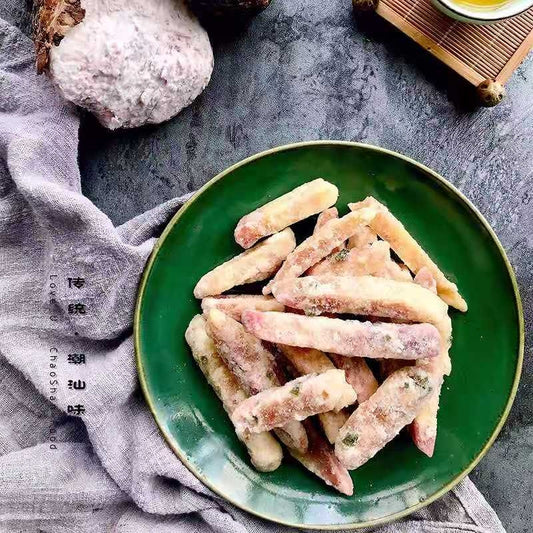 Chaoshan specialty, onion, taro, crispy bulk shredded taro, three-flavored sweet potato fries, purple fries, sweet potato strips 潮汕特产葱香芋头条香酥散装芋丝反沙三味反砂番薯条紫薯条地瓜条